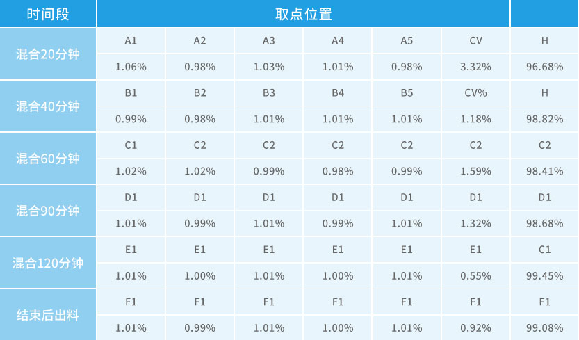 根據混合時間點取樣,檢測混合的均勻性是否達標,根據檢測結果和客戶混合任務既定最佳混合時間