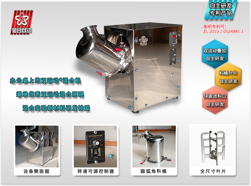 隨著中國(guó)制造2025的到來(lái),各種新材料研發(fā)雨后春筍,目前市場(chǎng)很難找到小型、性能優(yōu)異的臺(tái)式混合機(jī)。可喜的是雙運(yùn)動(dòng)臺(tái)式實(shí)驗(yàn)機(jī)應(yīng)運(yùn)而生。其研發(fā)目的是秉承雙運(yùn)動(dòng)混合的先進(jìn)混合原理同時(shí)又小巧精致可以放在辦公桌上運(yùn)行。