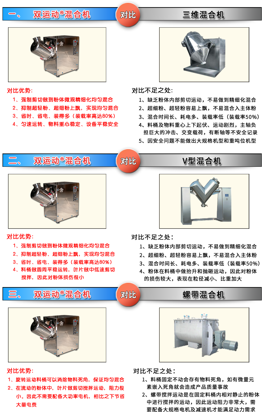 這也是因?yàn)閮蓚€(gè)運(yùn)動(dòng)疊加混合的先進(jìn)原理,在單位時(shí)間內(nèi)兩個(gè)運(yùn)動(dòng)同時(shí)進(jìn)行,不但雙倍地提高混合效率,還恰到好處地互相促進(jìn)混合作用,促進(jìn)混合工作更加有效地進(jìn)行。因此雙運(yùn)動(dòng)混合機(jī)比傳統(tǒng)混合機(jī)節(jié)省時(shí)間60%。